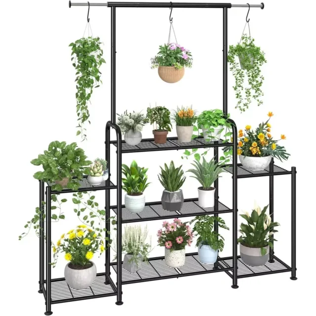 Maximize your plant display with this beautifully designed 3-Tier Metal Plant Stand. With an upgraded large capacity and an extendable hanging rod, this heavy-duty ladder-style stand lets you showcase your plants in a way that’s both stylish and space-saving. Whether indoors or outdoors, this stand transforms any corner into a lush green paradise.