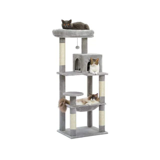 Not only does this 5-Level Cat Tree provide endless entertainment, but it also offers your cat a dedicated space for scratching and resting. This is especially helpful for large cats who need more room to move around and stretch. The cat tree’s unique design encourages climbing and exploring, while also providing a safe, comfortable space to relax and sleep. It’s ideal for multi-cat households, as it gives them plenty of room to share without feeling crowded.