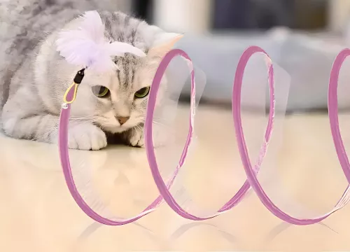 Walter, our cat, has been thoroughly intrigued by this open spiral tunnel, offering him a new source of entertainment.