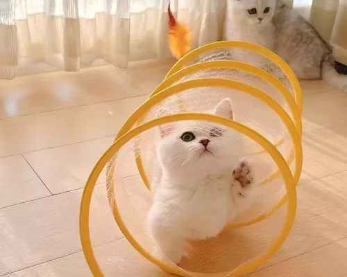 This cat adventure tunnel has been a hit with my cats. they absolutely love running through it and playing hide and seek. the material is sturdy and the crinkly texture adds an extra element of fun. it was easy to set up and is lightweight enough to move around the house. the tunnel also folds up nicely when not in use, making it easy to store. since we got this tunnel, my cats have been more active and entertained. it’s great to see them enjoying themselves so much. the tunnel is spacious enough for them to play comfortably and they love the different entrances. this has been a great addition to their toys and has provided endless hours of fun. i highly recommend this tunnel to other cat owners looking for a durable and entertaining toy for their furry friends.