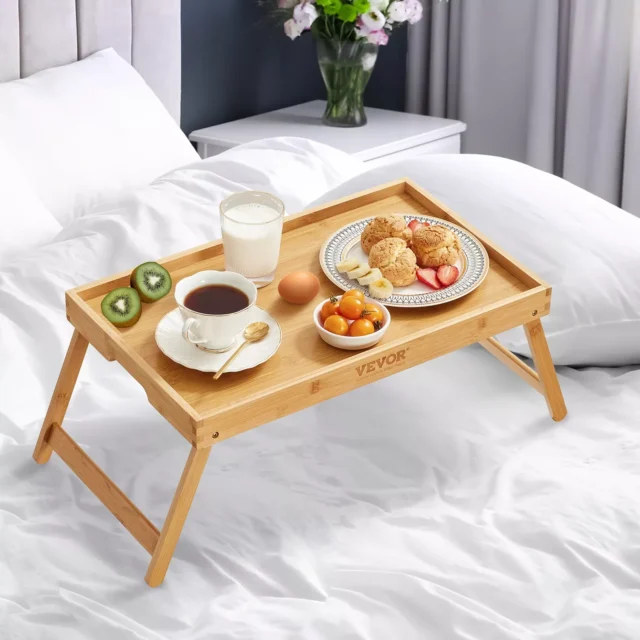 Bamboo Breakfast Tray with Folding Legs for Sofa Bed, Adjustable Serving Laptop Desk