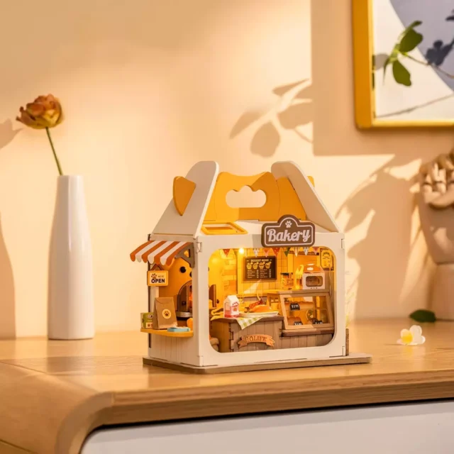 With its soft pastel colors and intricate details, this bakery dollhouse makes a wonderful decorative piece for any room. Use it as a night light, showcase it on your shelf, or give it as a heartwarming gift to someone who loves DIY crafts and cute collectibles. In just about 1.5 hours, you can bring this diorama to life—no glue required!