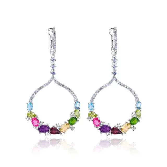 Make a bold statement with these luxurious multicolor gemstone dangle earrings. Crafted from high-quality 925 sterling silver, these earrings are handmade with precision and care to offer both elegance and individuality. Featuring vibrant topaz gemstones set in a stunning plant-inspired circle design, these earrings exude sophistication and charm. Perfect for special occasions, such as anniversaries, parties, or weddings, these statement earrings add a pop of color and a touch of class to any outfit.