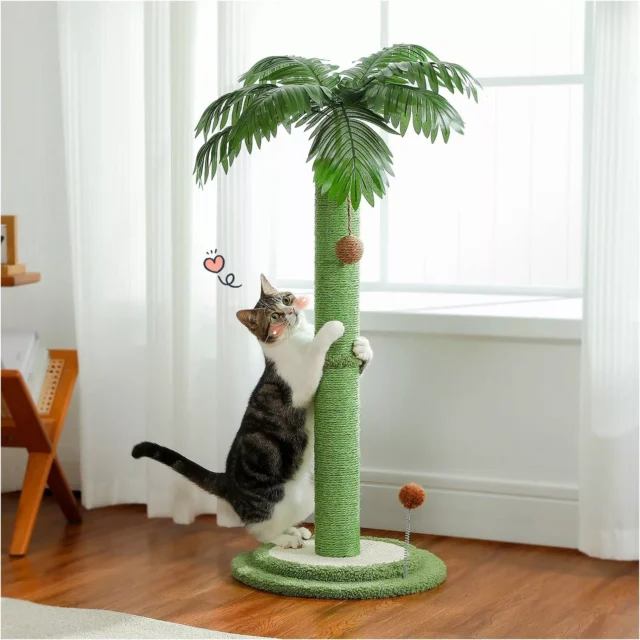 • Interactive Coconut Balls: The palm leaf design includes playful coconut balls that hang from the post, making it even more exciting for your pet to play, bat, and interact with.