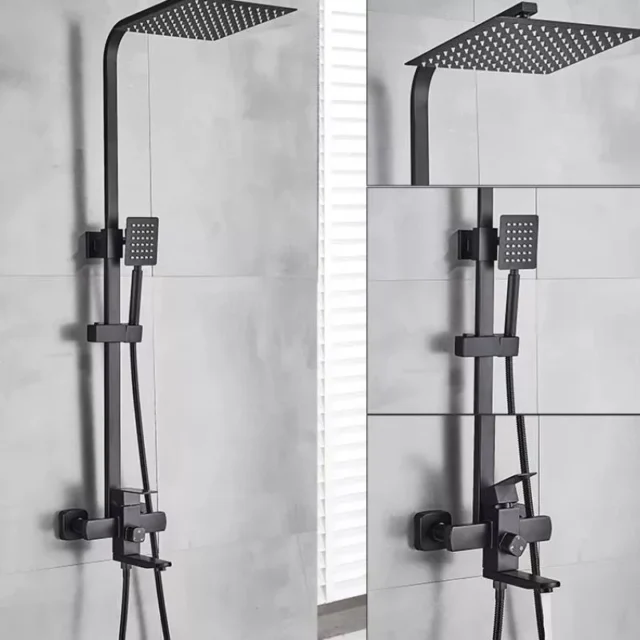 This Matte Black Shower Faucet Set is not just about looks. It’s crafted to deliver performance and durability, making it perfect for anyone who appreciates high-end bathroom fixtures. The 8-inch square rainfall showerhead offers a luxurious water flow, perfect for those who want to feel like they’re in a spa. The single-handle design makes it easy to adjust the water temperature, while the bath spout ensures you have everything you need for both showers and baths.