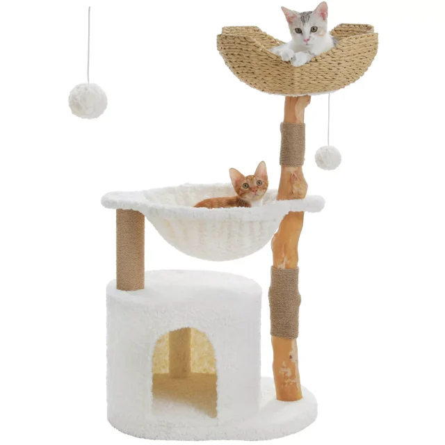 • Real Branch Scratching Post: The natural wood trunk is wrapped in pure sisal rope, providing your cat with an ideal scratching surface while protecting your furniture from damage.