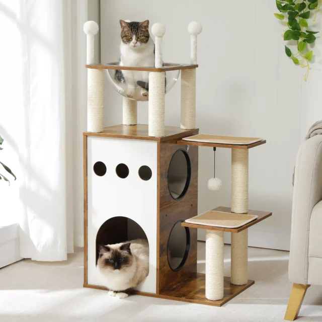 Every cat deserves a space to call their own, and this modern cat tower provides just that. The top-level capsule nest gives them a cozy hideaway with a view, while the two-floor condo offers privacy for naptime. Whether your cat enjoys perching high, stretching out, or sharpening their claws, this cat tree is built to support their natural instincts.