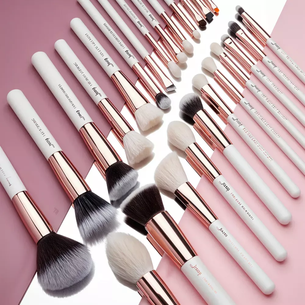 Each brush features a high-standard handle made from premium birchwood, coated seven times for a sleek and durable finish. The pearl-white design, complemented by a luxurious rose gold metal ferrule, offers a firm grip for precise application and a touch of elegance to your vanity. These brushes are lightweight yet sturdy, making them easy to control for the most intricate makeup looks.