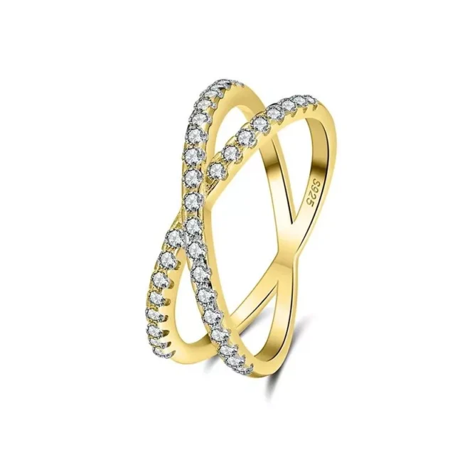 This exquisite ring features a double-row design that gracefully intertwines, highlighting a delicate yet bold cross motif. Each shimmering zircon stone is expertly prong-set, ensuring long-lasting brilliance and a luxurious finish. The 925 sterling silver construction provides a premium touch, offering durability, a comfortable fit, and a hypoallergenic experience for sensitive skin.