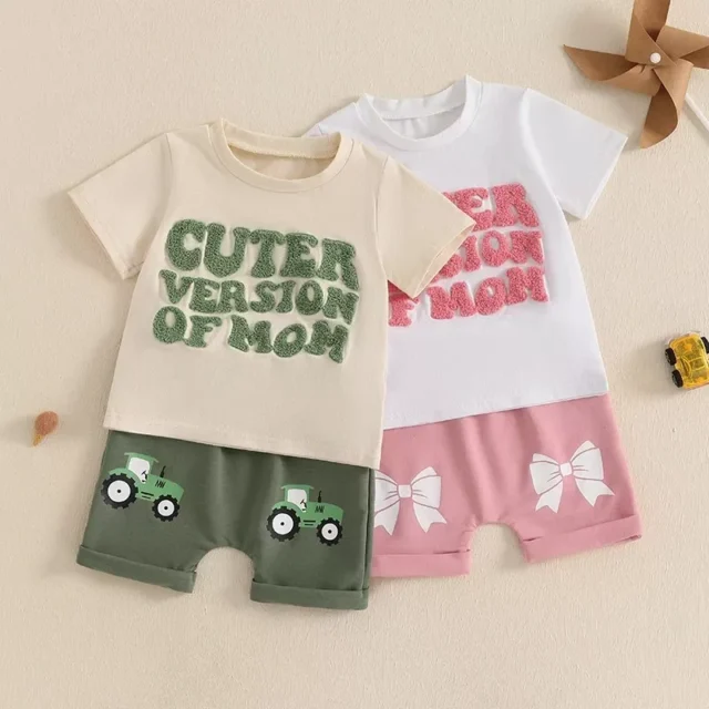 Dress your little one in this adorable Toddler Baby Boys Girls Letter Embroidery T-Shirt & Bow Pattern Shorts Set, designed for comfort and style! This charming 2-piece outfit is perfect for those warm summer days and is sure to keep your toddler both cool and fashionable. The set includes a cute letter-embroidered short-sleeve t-shirt paired with elastic waist shorts featuring a fun bow pattern. Ideal for casual outings, playdates, and sunny days, this outfit is as practical as it is stylish.